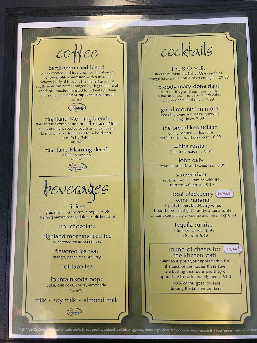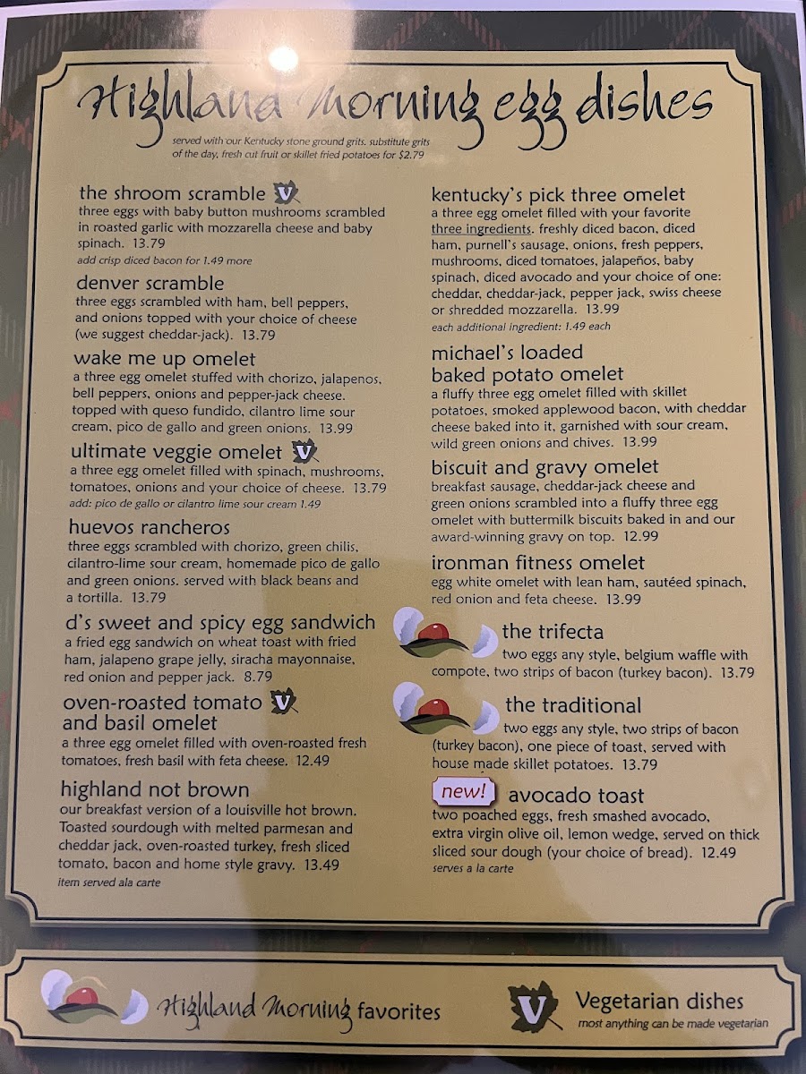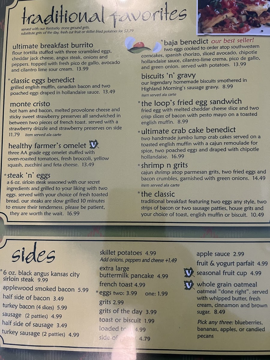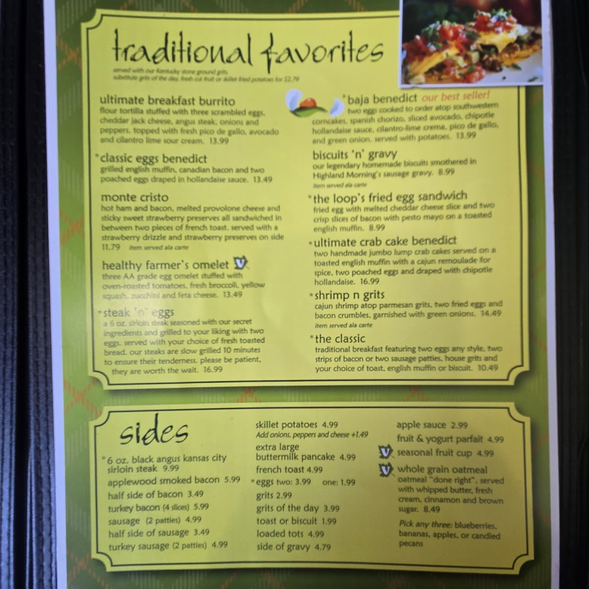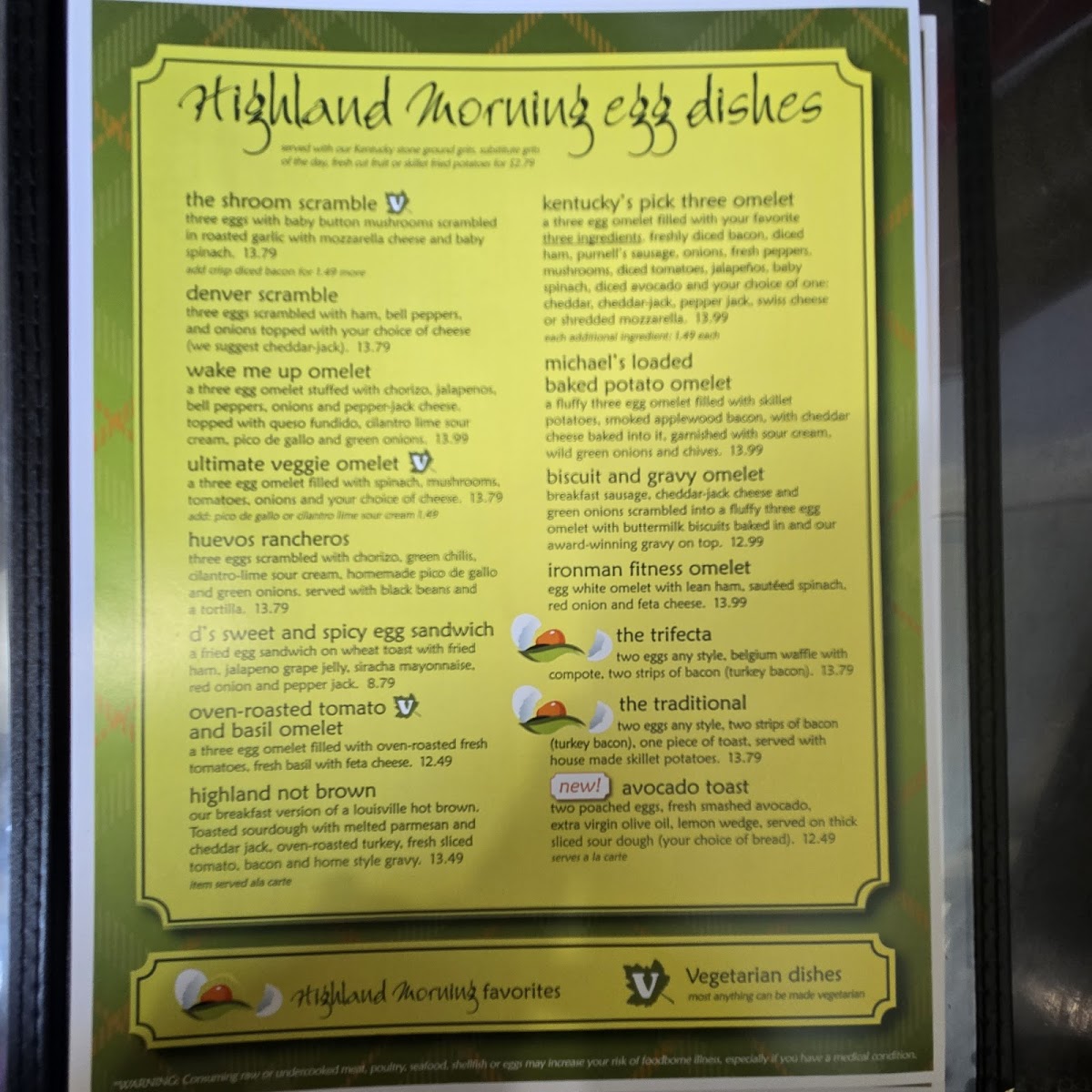 At Highland Morning, you'll find a menu that brings together comfort, freshness, and a welcoming vibe, perfect for those who enjoy starting their day with a satisfying meal. The Highland Morning Menu offers a variety of delicious dishes that cater to all tastes. Whether you're in the mood for a classic breakfast, a hearty brunch, or something lighter, this menu has something special waiting for you. From fluffy pancakes and savory omelets to flavorful sandwiches and fresh salads, every dish is made with care and quality ingredients. With a laid-back, cozy atmosphere, it's the perfect spot to gather with friends or take a moment for yourself. No matter what you choose, each bite promises a warm and delightful experience.