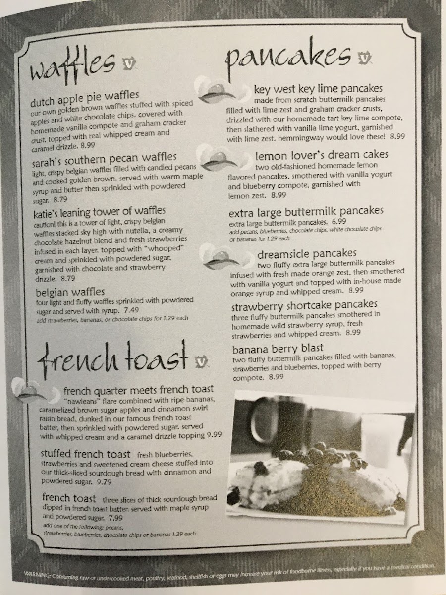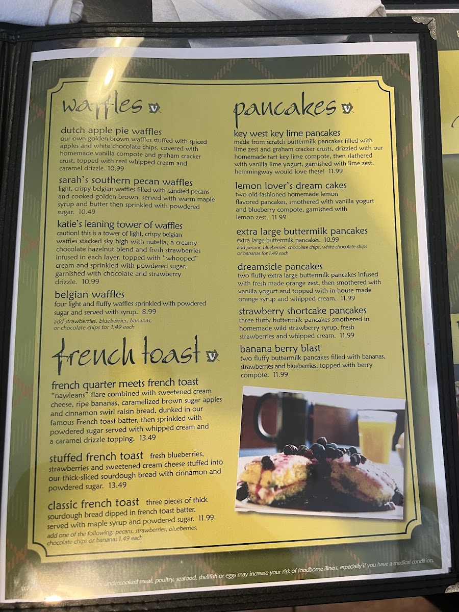 light, crispy belgium waffles filled with toasted georgia pecans (candied pecans available) and cooked golden brown, served with warm maple syrup and butter then sprinkled with powdered sugar